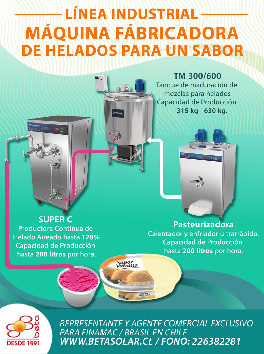 Maquina Industrial Continua para Fabricar Helado Continuo con incorporación de Aire al Helado hasta un 110% SUPER C